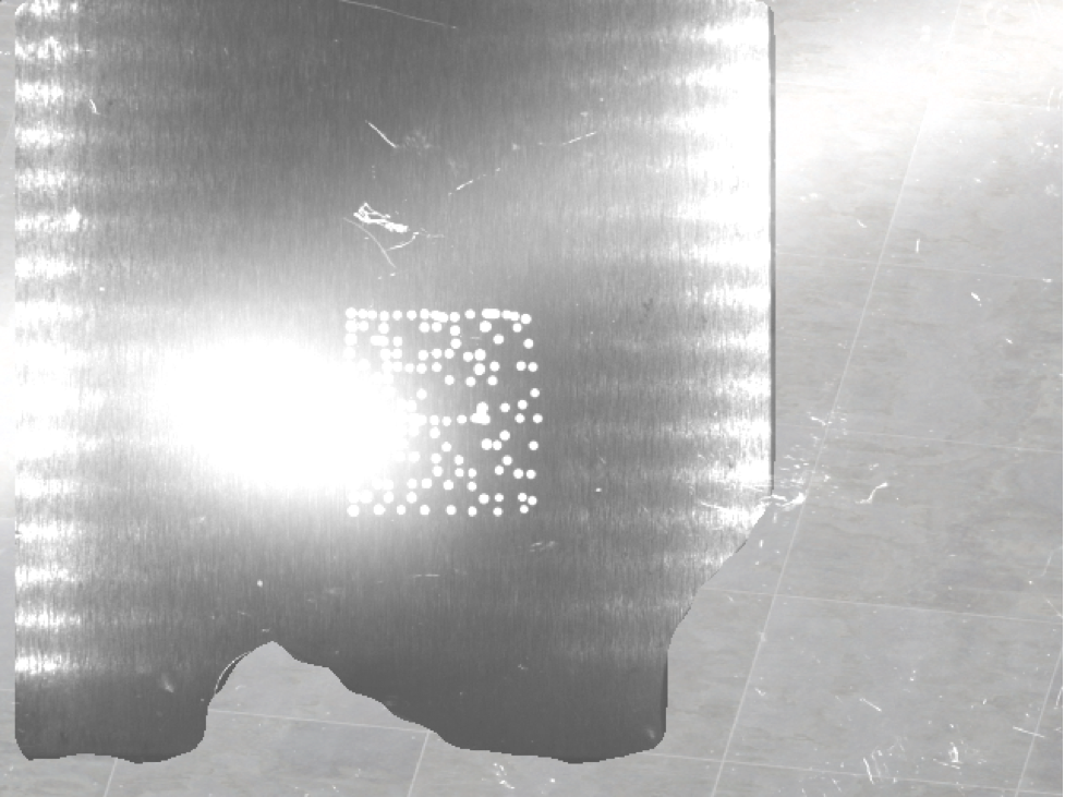 Recently we developed a data augmentation solution for a client who uses Data Matrix Code (DMC) for product identification. DMC is a 2D code that is similar to ubiquitous Quick Response (QR) code, but has some advantages for product marking because it can encode more characters within the same space and is therefore better suited when the location of the code is limited in size. For reliable detection, a DMC detector should not be sensitive to common image degradations i.e. variabilities. In this use case, common degradations include camera perspective changes, constant or structured brightness changes due to additional light sources, spurious reflections, random dropping of dots in the code, scratches or background changes. Generally, frameworks such as Torchvision or Albumentations can be used for most common augmentations, but usually (as in this case) a customization is needed for specific use cases. For example, here we needed to implement realistic non-constant brightness changes due to additional light sources, realistic reflections that usually appear due to lighting of the scanner device, scratches, changes of background (different texture or completely different background) and a DMC and metal sheet detector. Below we include an example image of DMC on a metal sheet and several examples of augmentations obtained by composing several degradations.