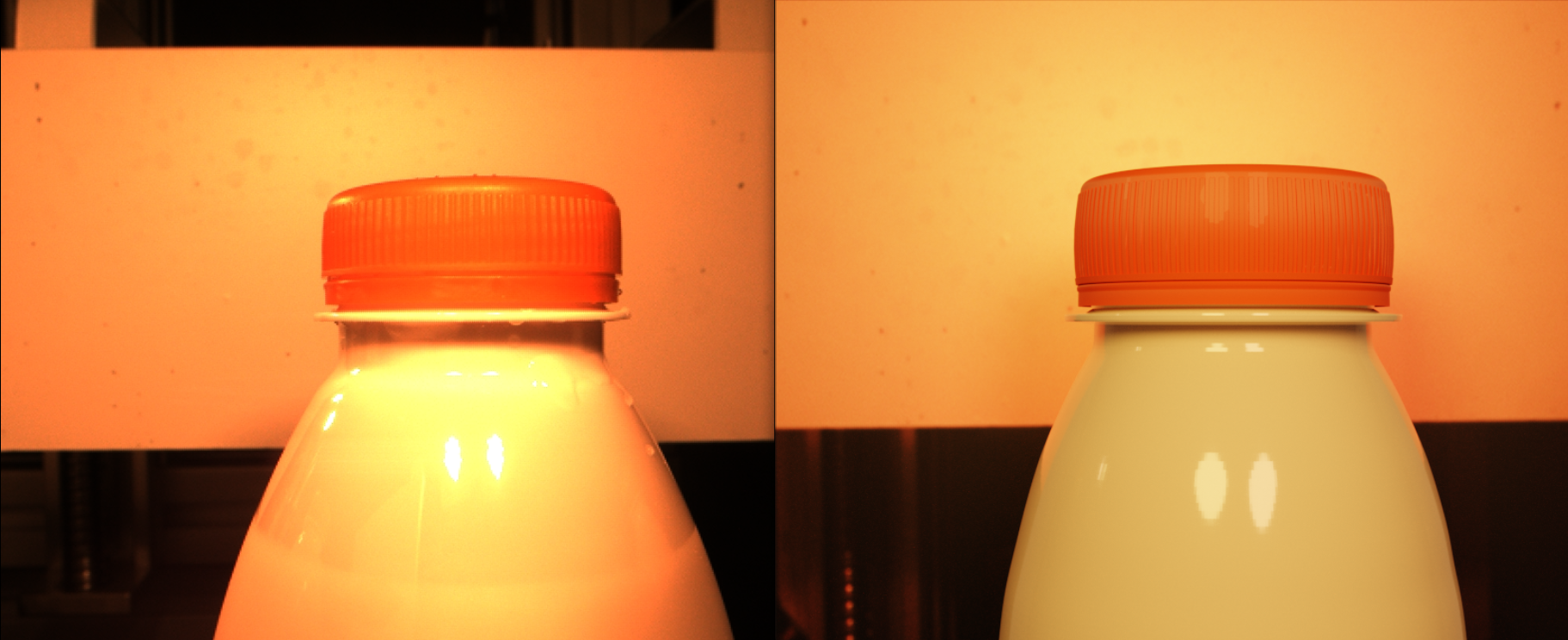 Blender – a 3D modelling software – was used for creating synthetic images of bottles. We have created a bottle and a cap 3D model that is a close copy of a real bottle, and then edited the cap model to create a couple of examples of defective caps. A python script manipulated the model, changed the rotation on the bottle and rendered an image with resolution close to real images obtained.