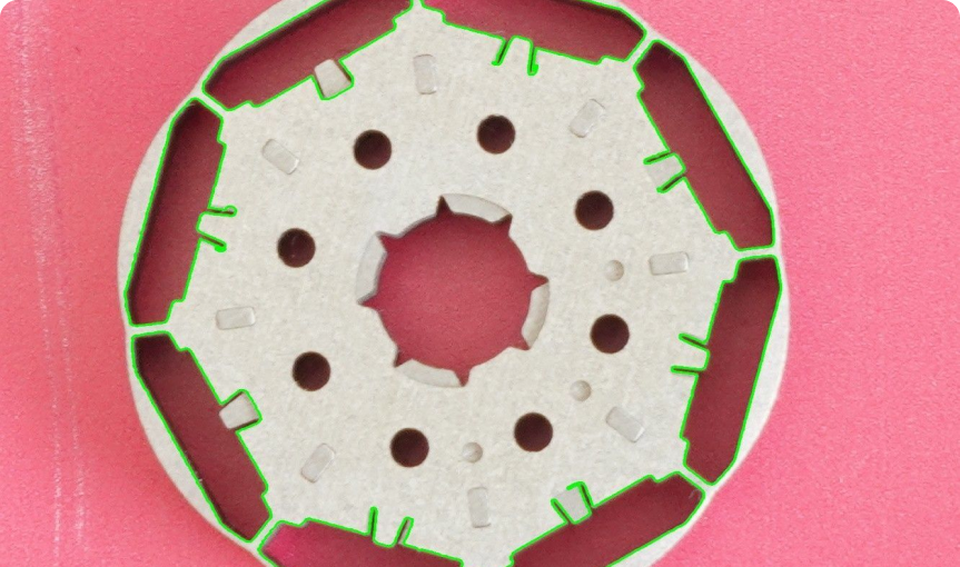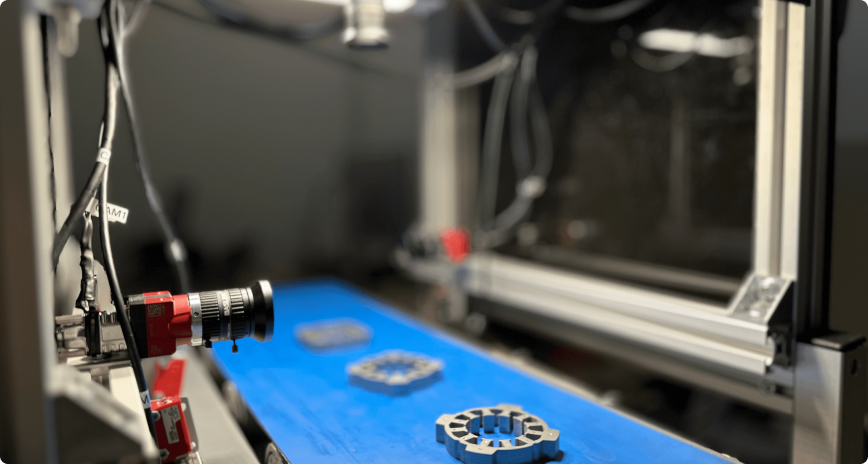A vision system with proprietary software and hardware, capable of 0.01 millimeter pixel resolution, accurately controls the dimensions and tolerances of rotors and stators. It detects and removes defective products, ensuring consistent product quality, improved reliability, and reduced production of defective items.